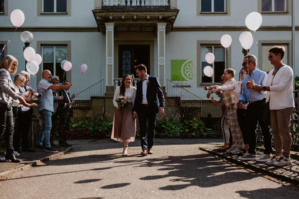 Nach der Trauung im Standesamt im wunderschönen Museum Schlosspark Bad Kreuznach ging es durch den Park zu Fuß weiter in das Restaurant "Im Gütchen".
