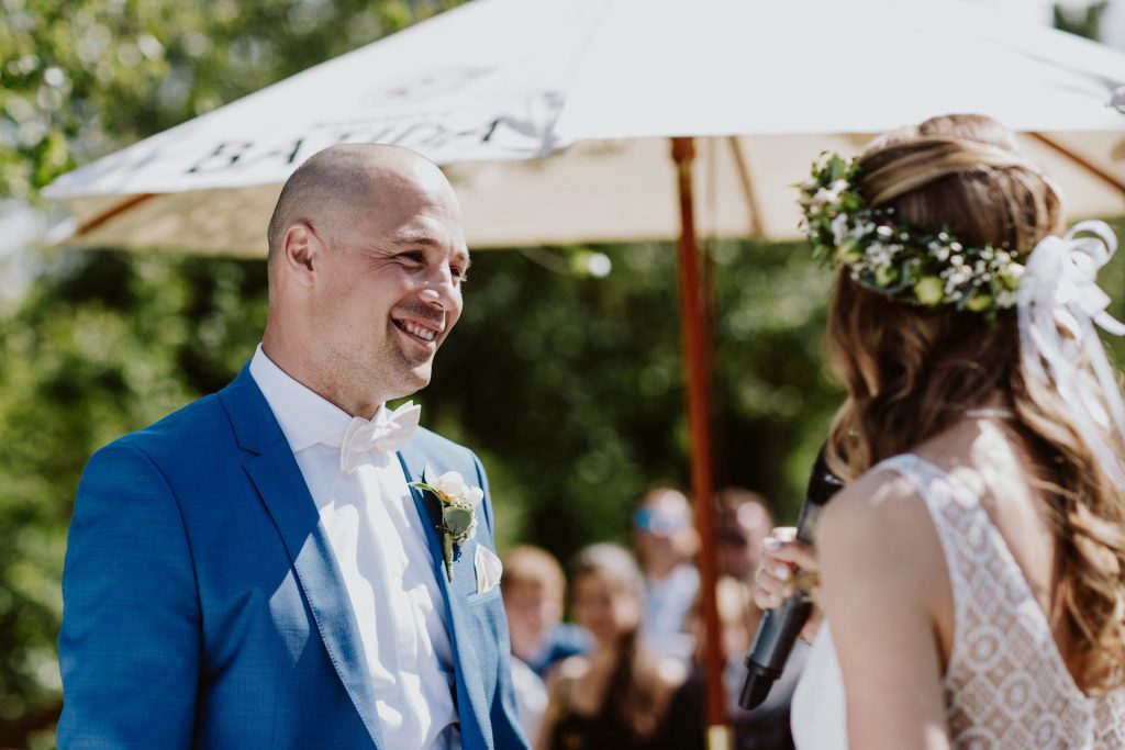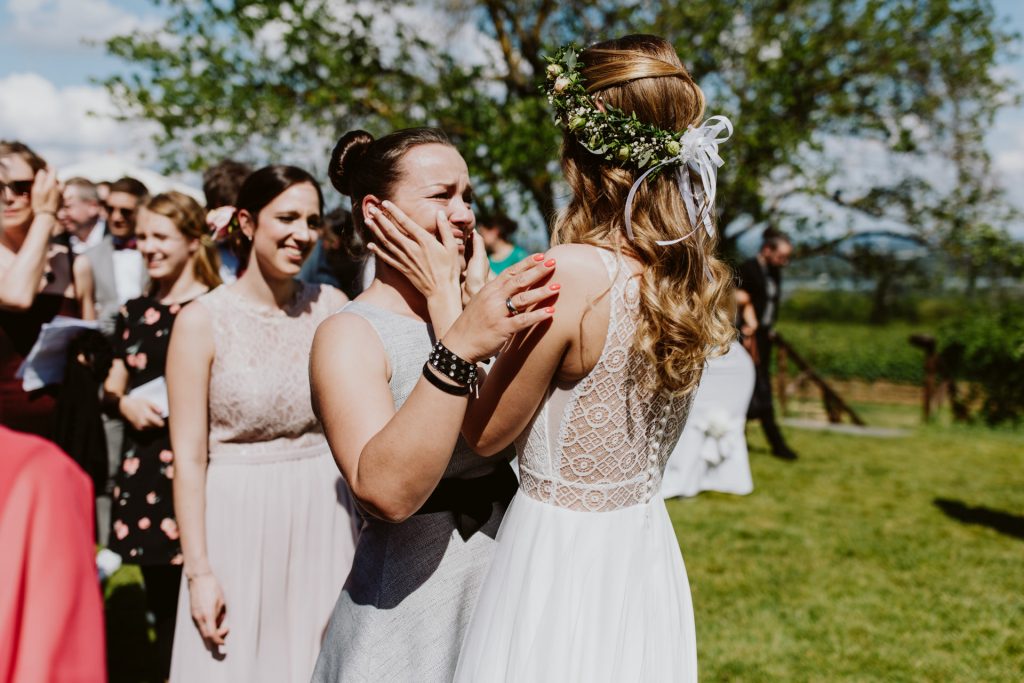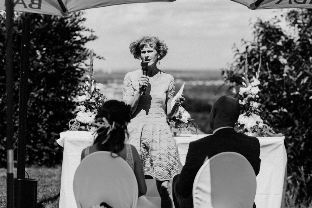 Los ging es in Frankfurt beim Getting-Ready von Braut und Bräutigam. Schön ist es, wenn wie hier auch Teile der Familie dabei sind und ganz entspannt miteinander ein Frühstück vor dem Trubel genießen können. Besonders individuelle war die Trauung, die draußen mit fantastischer Sicht auf die Weinberge stattfinden konnte. Sowohl die Mutter der Braut, als auch der Vater des Bräutigams leiteten die Zeremonie und haben die Hochzeit so zu einem noch persönlicherem Erlebnis gemacht.