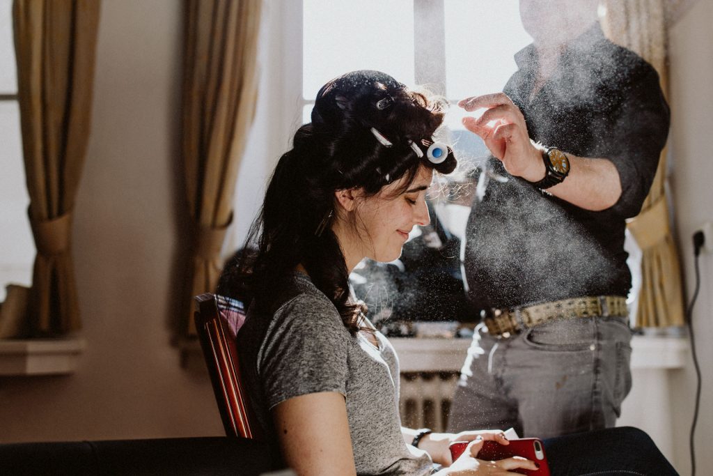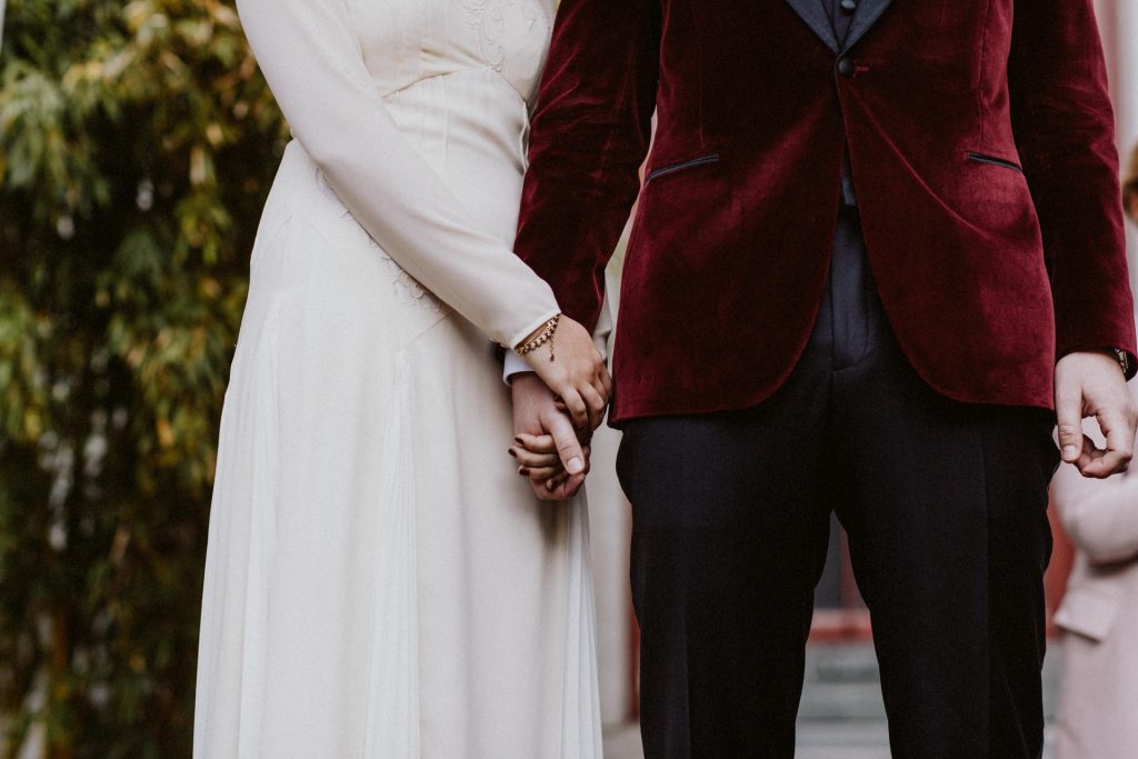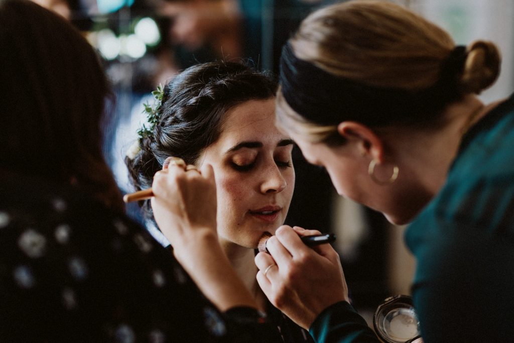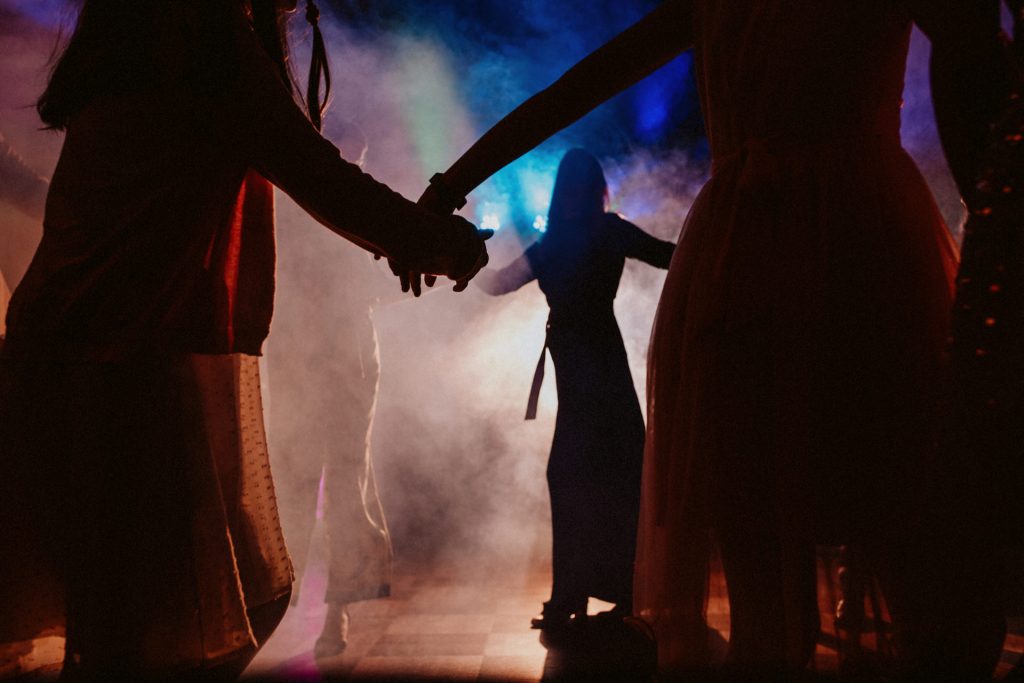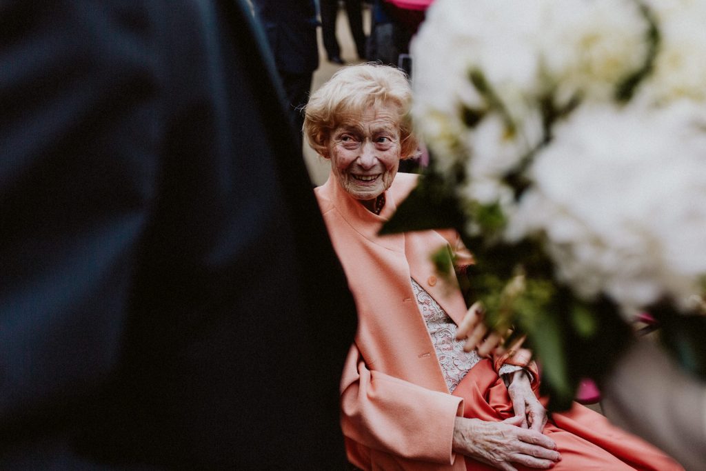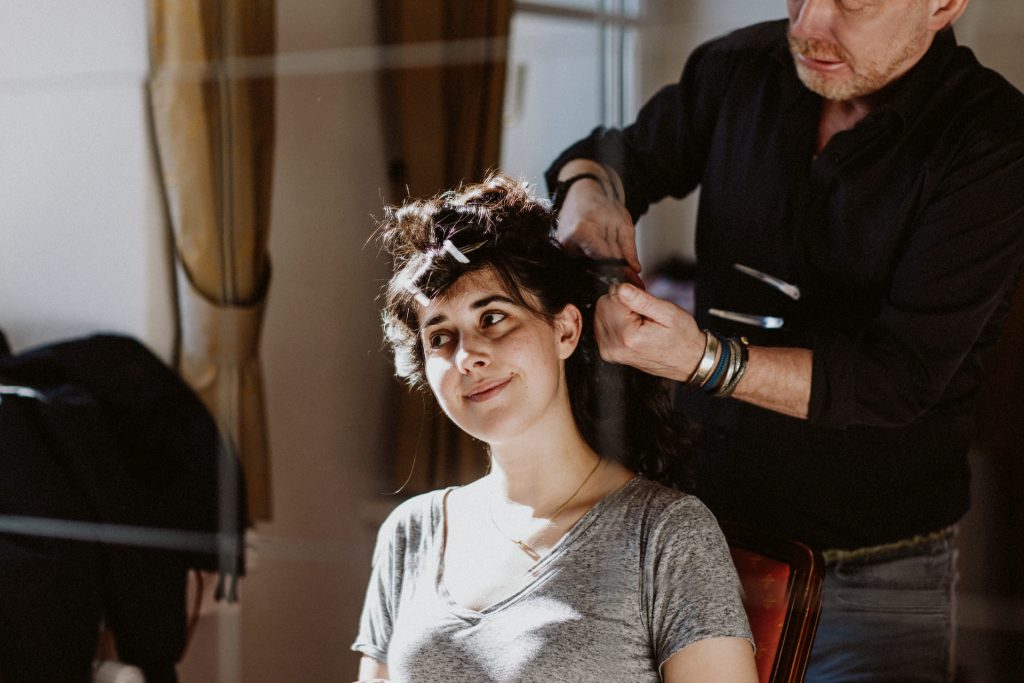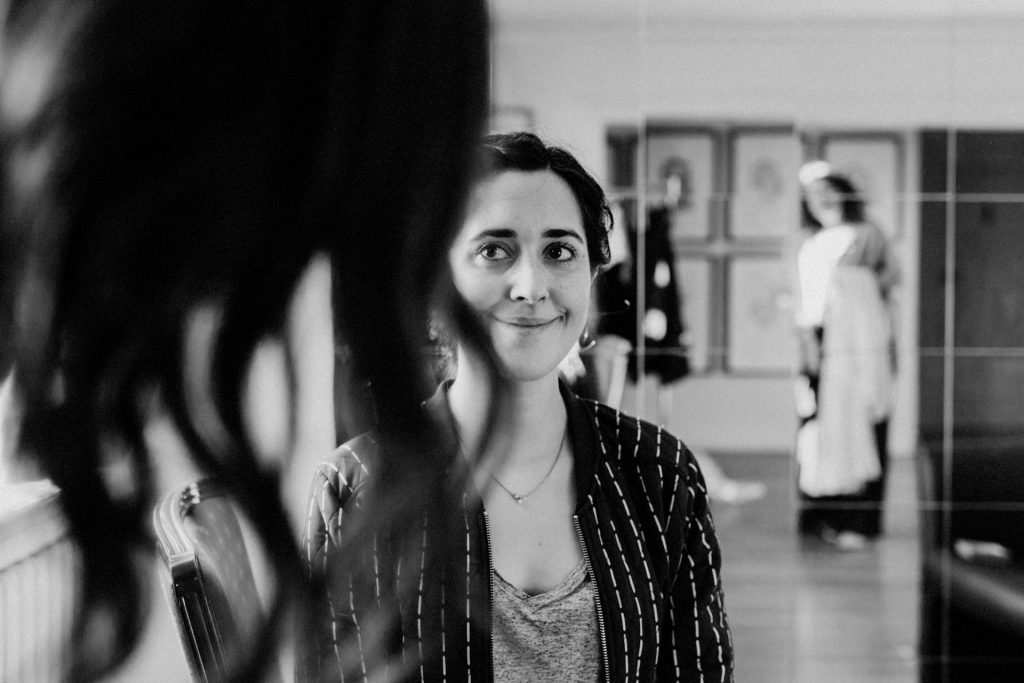 Die Trauung fand im Innenhof unter freiem Himmel statt. Trotz der zentralen Lage in München ist man im Künstlerhaus abgeschieden und kann sehr privat Hochzeit feiern. Für mich ist es immer wieder faszinierend, Hochzeitsbräuche anderer Kulturen kennenzulernen – so wie hier die Mischung aus deutschen und jüdischen Traditionen. Besonders schön war es auch, dass der Bruder der Braut die Zeremonie geleitet hat und die Ansprache der deutsch-jüdischen Hochzeit sowohl auf Hebräisch als auch auf Deutsch halten konnte. Vier Freunde des Brautpaares hielten den Traubaldachin, die Chuppa, gemeinsam fest unter welchem das Paar während der Zeremonie stand. Als Abschluss folgte das traditionelle Zertreten eines in Tuch eingewickelten Glases des Bräutigams.