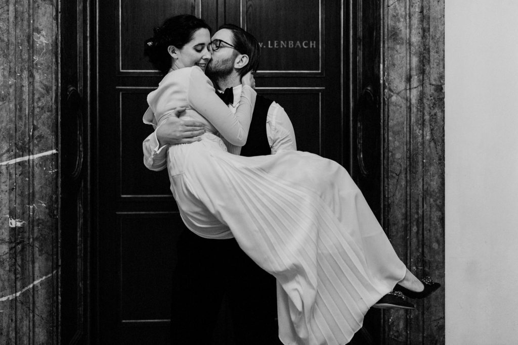 Das Künstlerhaus München war für mich eine wirklich außergewöhnliche Location! Hochzeit feiern mitten in München und das sehr stilvoll und urban. Der Saal im Münchner Künstlerhaus bietet ein spektakuläres Ambiente für eine Hochzeitsreportage – vor allem, wenn das Paar und die Gäste so emotional und ausgelassen feiern!