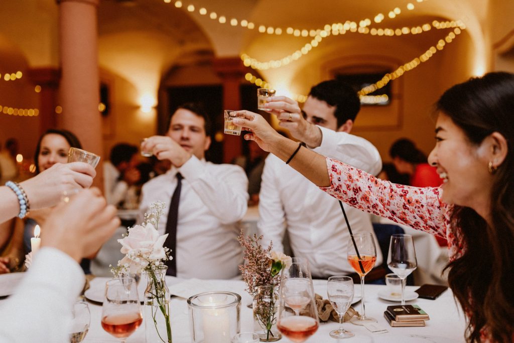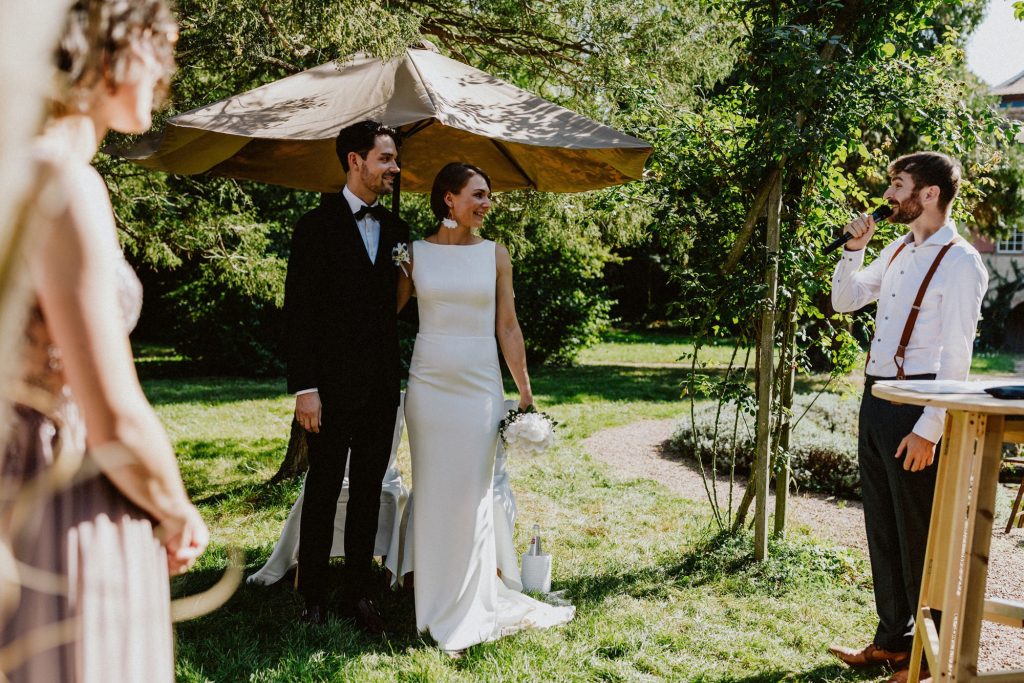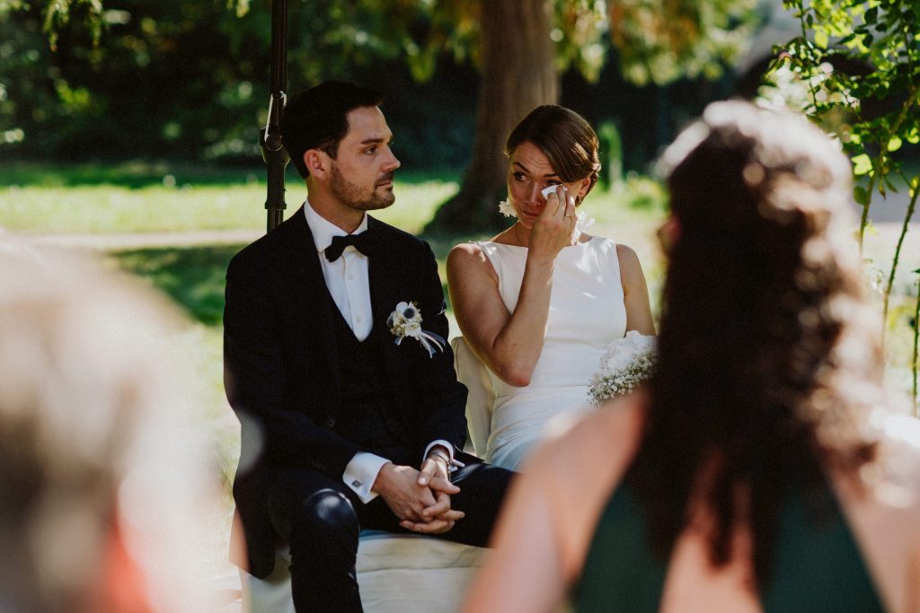 Durch die vielen verschiedenen Ecken - wie z.B. das kleines Häuschen für das Getting Ready, das Fischbasin für die freie Trauung und der große Baum unter dem es sich herrlich Sekt trinken lässt - bekommt man das Gefühl die Hochzeitsfeier an verschiedenen Locations zu verbringen, ohne den Ort wechseln zu müssen.