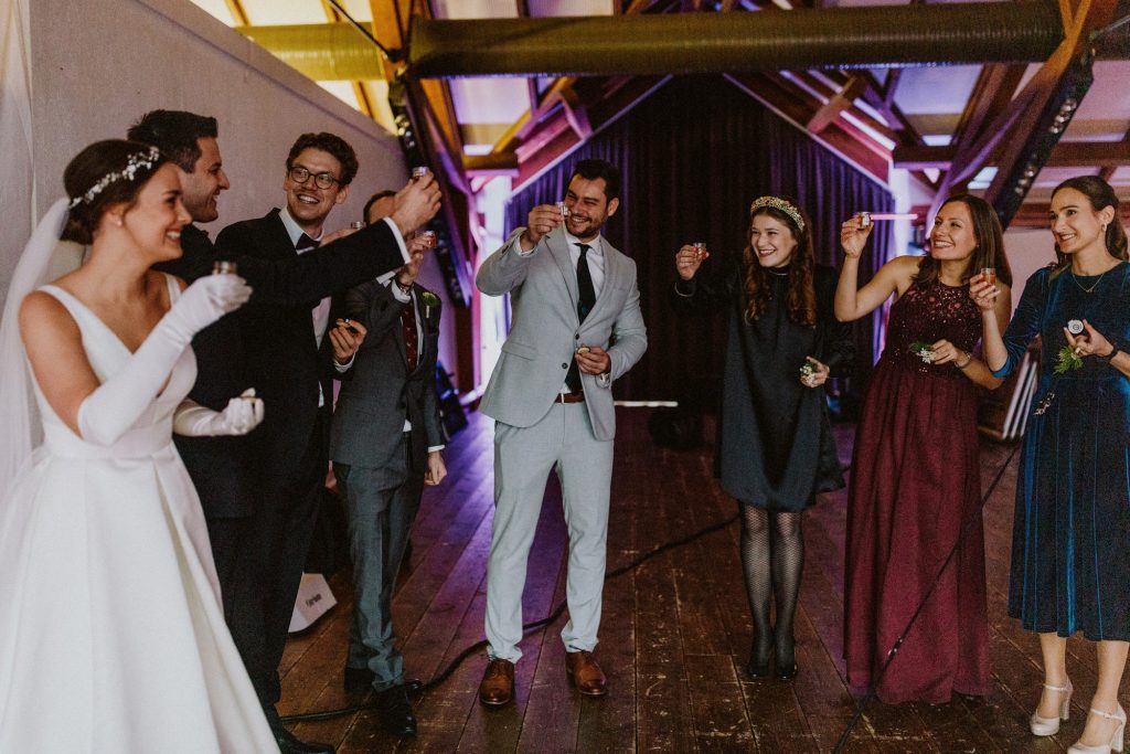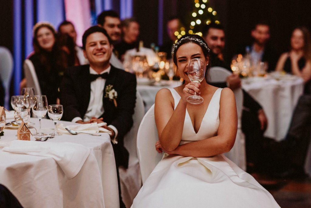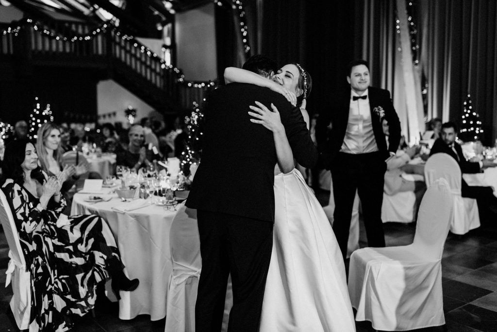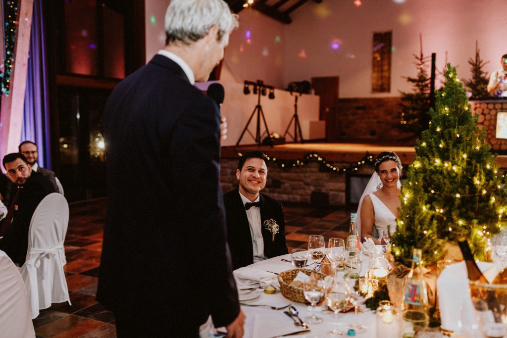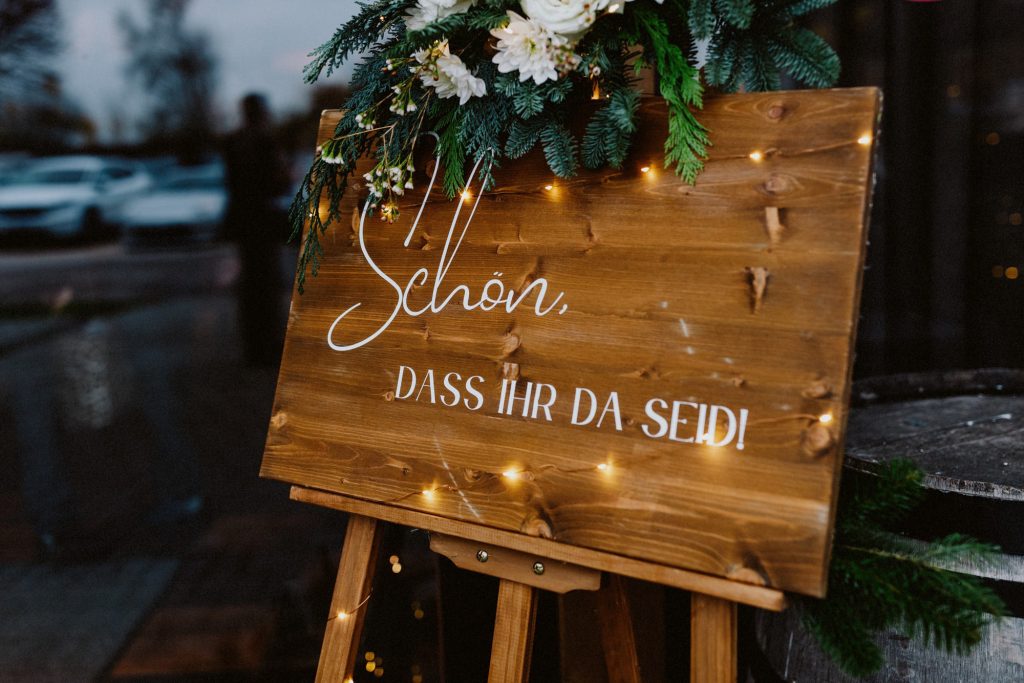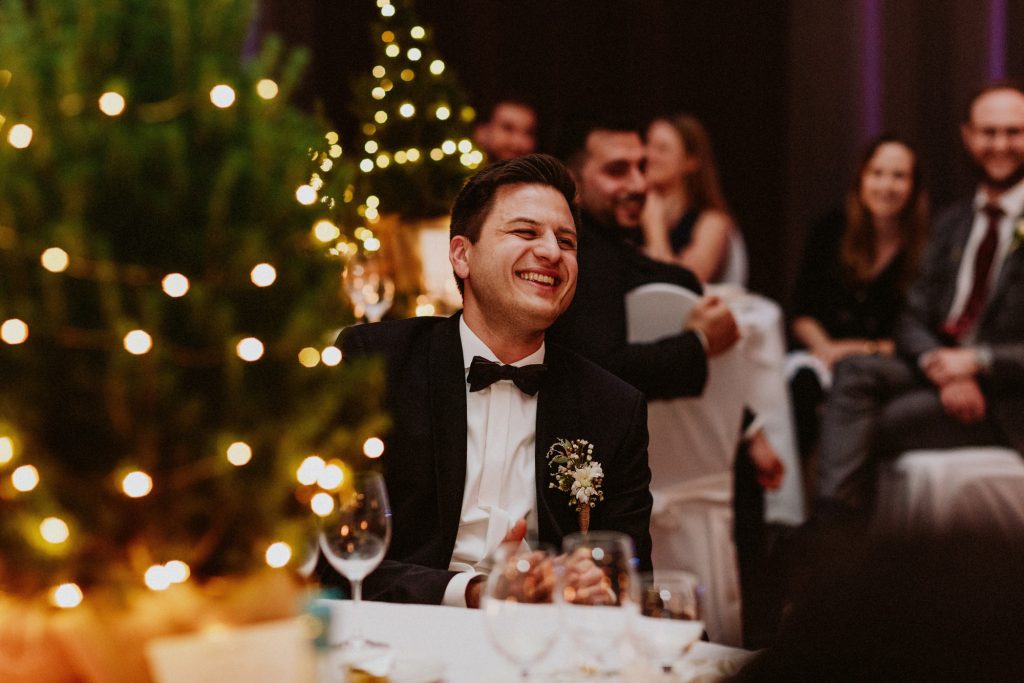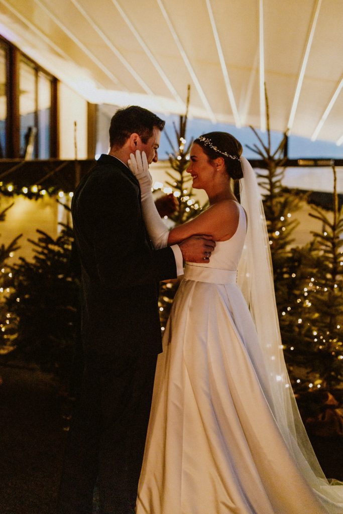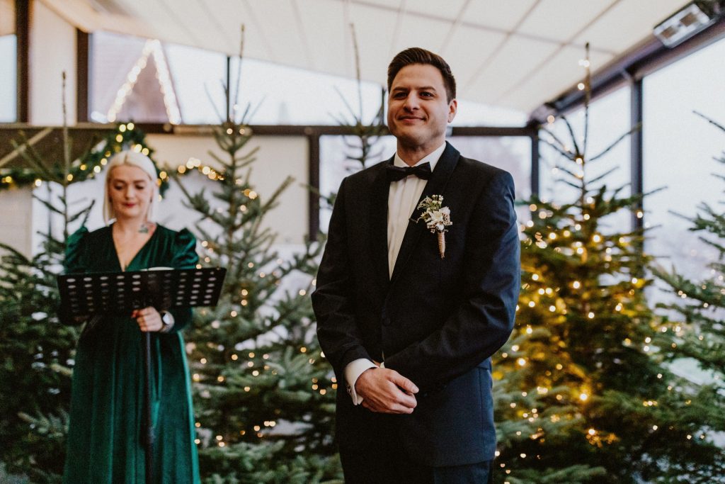 Zwischen weihnachtlichen Tannenbäumen und funkelnden Lichterketten ließ es sich wunderbar feiern, und die Aufnahmen dieser Winterhochzeit sind einfach zauberhaft geworden.